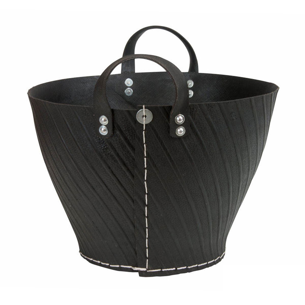 Nordic Blue Brændekurv, sort imiteret læder, 45x34x35,5 cm